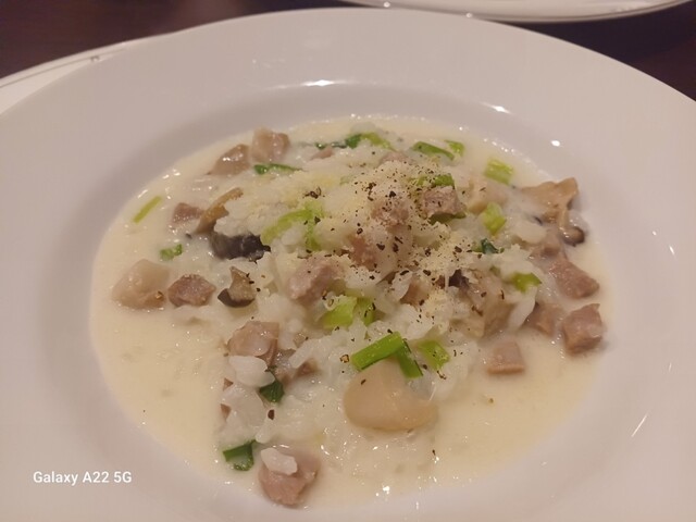 キノコとアサリのチーズリゾット