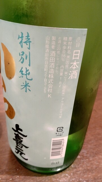 山形の上喜元からくち 特別純米酒
