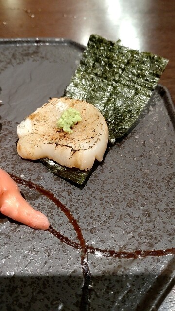 此方は直接自分で刺身に薬味を付けてオリジナル巻きを楽しむスタイル。旬の肝も有って美味しい。