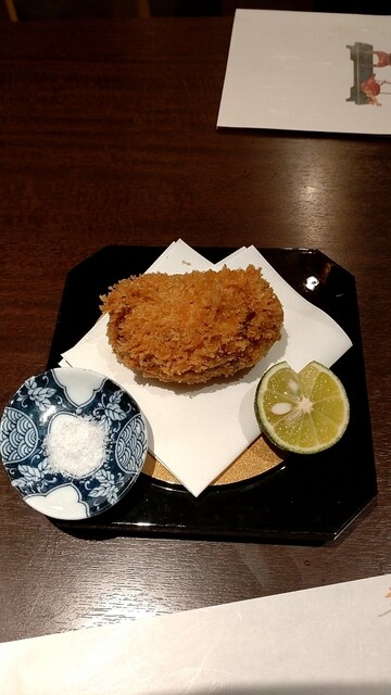 柚子をくり抜いた入れ物の中には、牡蠣が入って鱈の白子ムースで蓋がされて、クリーミーな味わい。