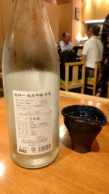 最初の日本酒は女将セレクトで、千葉県山武市の合資会社寒菊銘醸のOCEAN 99 純米吟醸。