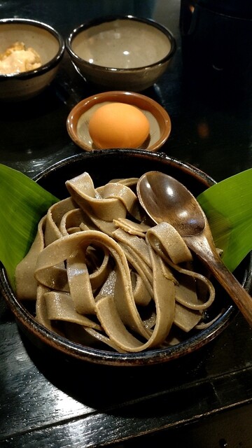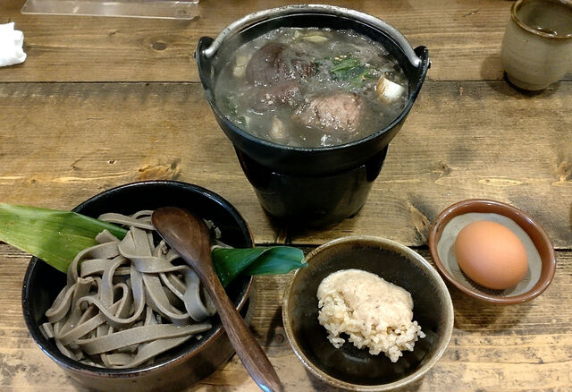 手打ちの平打ち麺を熱々の鍋出汁に浸して頂きます。十割蕎麦なのでボソッとしますが、噛みしめると蕎麦の風味を感じます。相変わらず護摩の風味が凄い。
