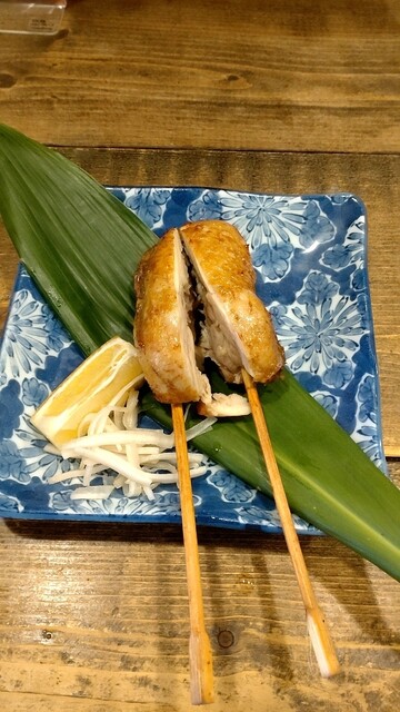 黒板メニューから。仙台在任中に知ったネズミサメの心臓。串に刺されているのは血管との事。肉質はしっとり柔らかく、味は淡白。血管の方は弾力が有り味は濃厚。