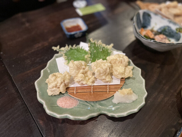 更に白鱚の天麩羅、トマトと茗荷をギンギンに冷やしたサラダ、白眉はフライド里芋。この里芋がヤバい旨さであるからして、当店にご来訪の折には是非とも一度御賞味されたい。