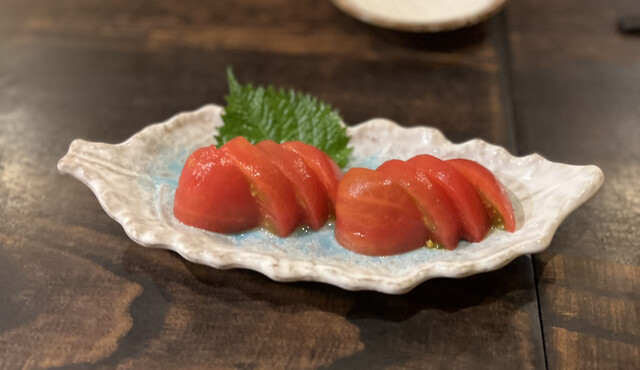 更に鶏、振袖の辛焼き、青森産のにんにく、トマトの糠漬け。