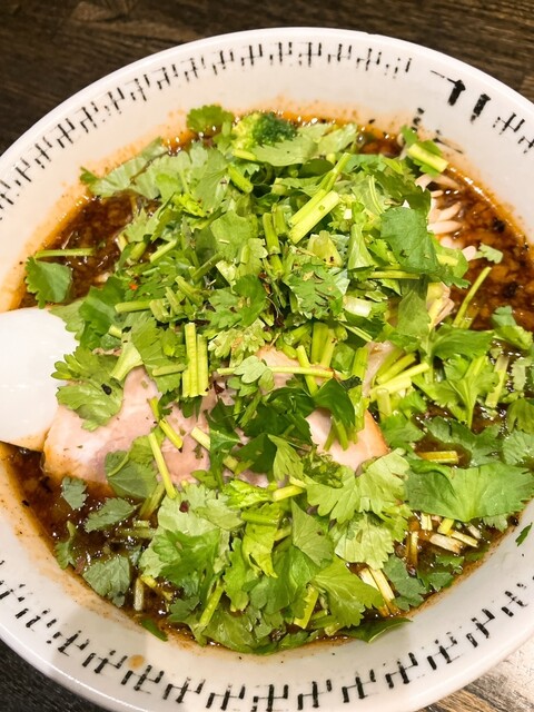 土曜日18時過ぎに行きました。先に食券を店の中で買って外に並びました。4組くらいの待ちでしたが15分程度で入店。スパイス・パクチーラー麺1,230円、スパイシー肉飯450円を購入。今まで食べたことない味わいで、パクチーもめっちゃいい感じで美味しかったです!スパイシー肉飯はイメージとちょっと違いましたが美味しかったです。