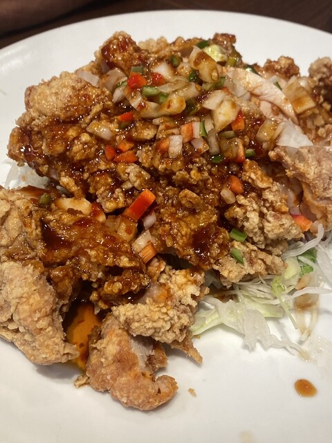 ランチで時々利用する四川料理店。ランチ同様、夜のメニューもボリュミー!女性3人で魚の鍋と乾し豆腐、ラムの串も2本づつ食べてお腹いっぱい。この魚の鍋は全く辛くなく白米が止まらないあと引く旨さ。満足です!
