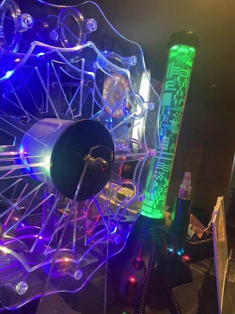 ブラックライトにネオン光る観覧車、ダーツなんかもありますね。