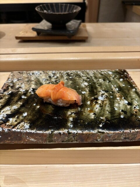 柔らかく甘いスミイカから始まり、鰤、〆鯖。軽い炙りでしょうか?香ばしさが広がる黒ムツ。ムッチリねっとりとした赤身の漬け、すーっととろける中トロ。玉ねぎのシャキシャキ感と甘味が際立つネギトロ手巻き。海苔に乗せられた干瓢の握りは自分で海苔を巻いてパクッと。パリッと音がする海苔は口の中で柔らかく解け風味がとても強い。