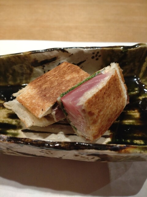 虎ふぐ、胆と一緒にいただくととろりとして、なんとも幸福になります。だんだんと酔っ払ってますので、記憶か薄くなっています。しかし鯖のホットサンドを食べると、なんと美味しい。初めて鯖をこんなふうに食べました。鯖の説明を聞いたのですが、普通の鯖ではないのかも。