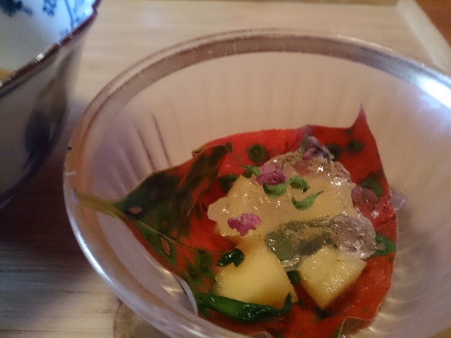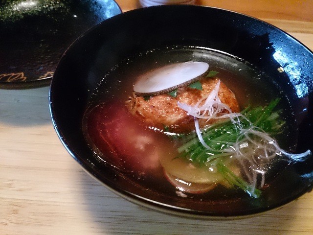 茄子のオランダ煮、あわ麩と銀杏、むかご、メギスのつみれ珠洲産シバ茸