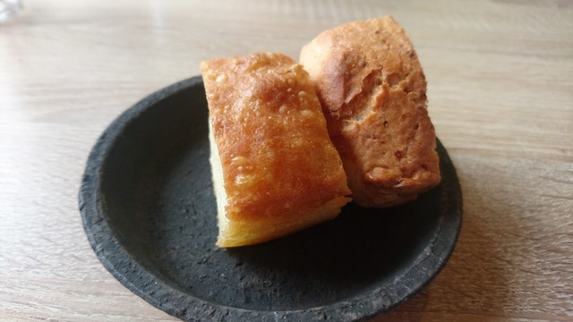 ・フォカチャと能登町の米飴の麹かすをどうかして作ったパン。どうかしての部分は、忘れました。