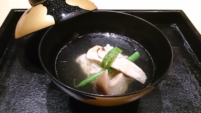 先吸い物もおいしくいただきました。秋なのでちょっとだけマツタケ入り。