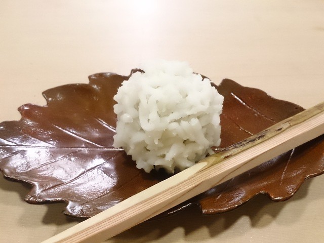 和菓子は、ユリ根で作られています。そのあと、抹茶。