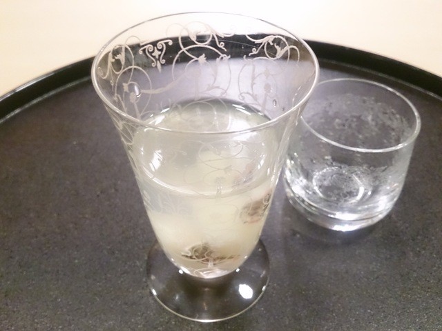 鯛と蕪の冷スープ バカラの器・・・もうお店閉めるので大盤振る舞いで、いい器を