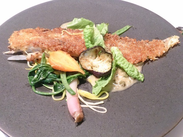 能登牡蠣、トーストが乗ったフィッシュ、町野産の野菜たち
