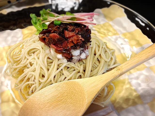 〆はお蕎麦。大根おろしとしば漬けの大原を選択。