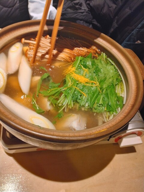 クエの唐揚げ、お刺身、お鍋と締めの雑炊、