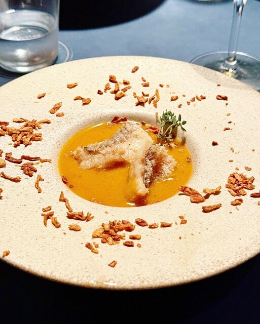 コースは品数もボリュームも申し分なく、多彩な食感と味わいを堪能。ワインとの相性も抜群で、白ワイン2種、オレンジワイン1種、ロゼ1種、赤1種と充実のラインナップでした。お酒が苦手な方にはティーペアリングも用意されており、細やかな心配りが感じられます。