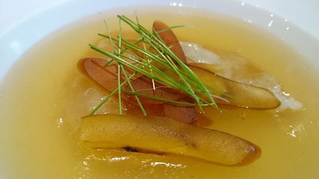 ○中国ポルチーニとジュンサイ、トマトのスープ