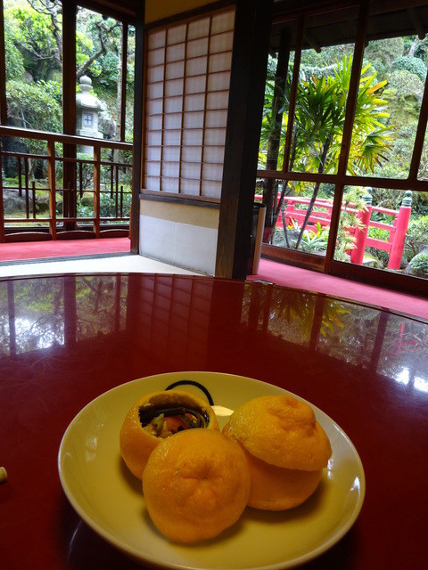 ・蒸物 (三宝柑容器に蟹)