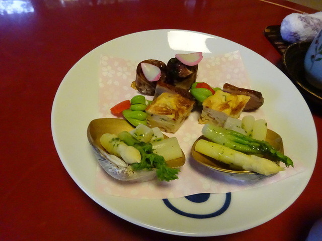 ・桜えびキッシュ わかめといいだこの煮こごり 筍とアスパラ 鴨