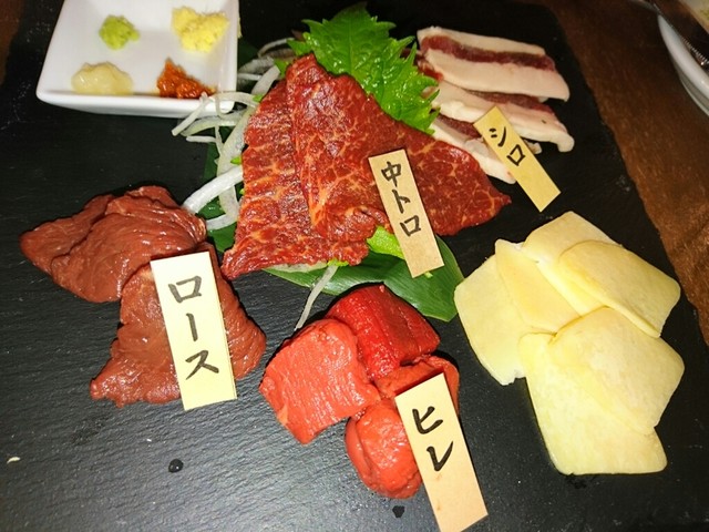 馬刺し盛りあわせ。