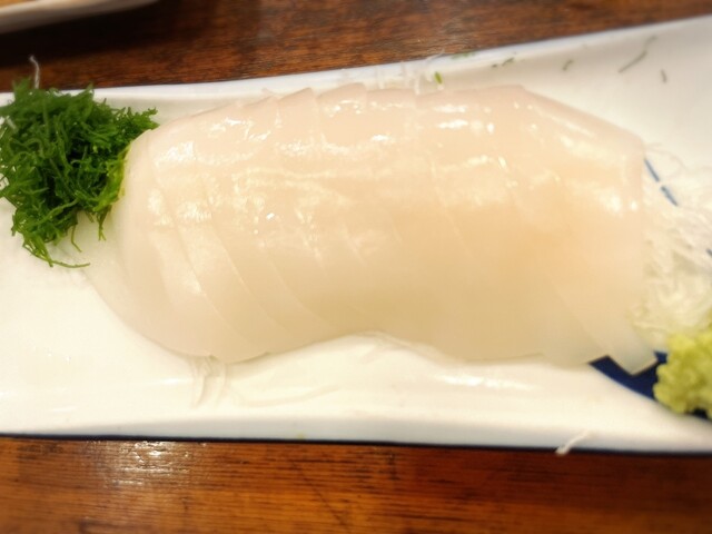 刺身はあらかじめ一皿に盛り付けられているものがずらっと冷蔵ケースに準備されてるので、注文するとすぐ届きます。