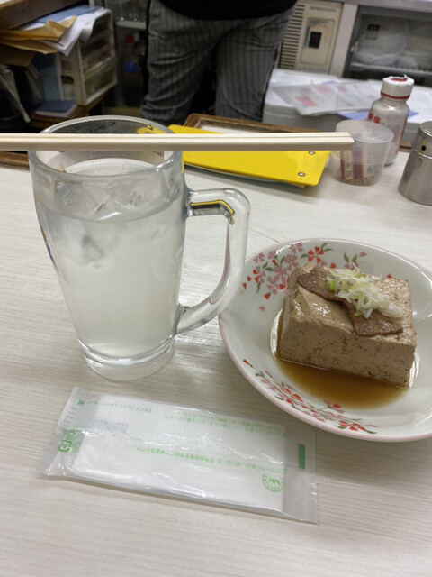 そんな中でまだ持ち帰りをやっていることを表の立看板を見て、当初は煮込み豆腐を持ち帰りして帰ろうと思ったのですが、中に入るとやっぱり飲みたくなってしまうものです。