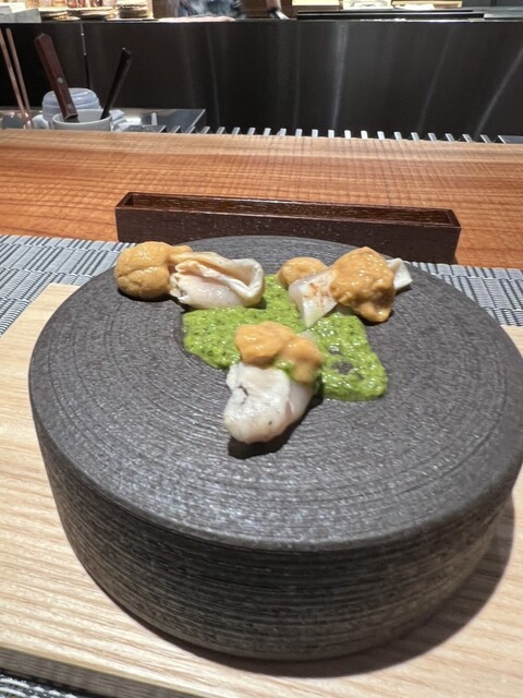 香草とオイルと橙、ごま油を入れたチミチョリソースと雲丹の組み合わせは絶品!!