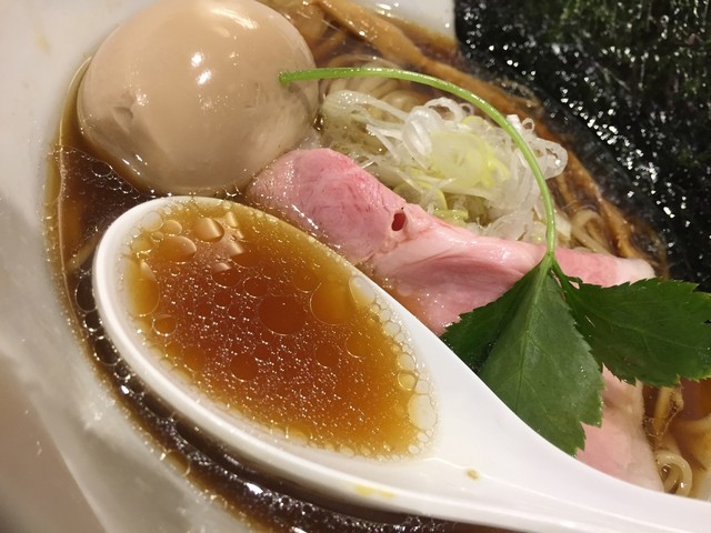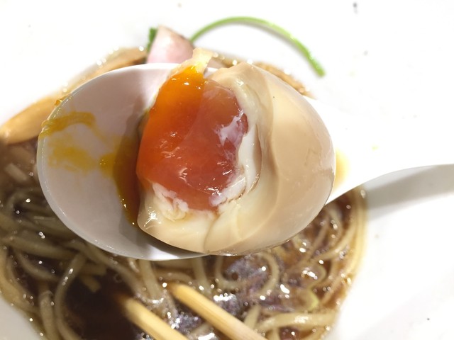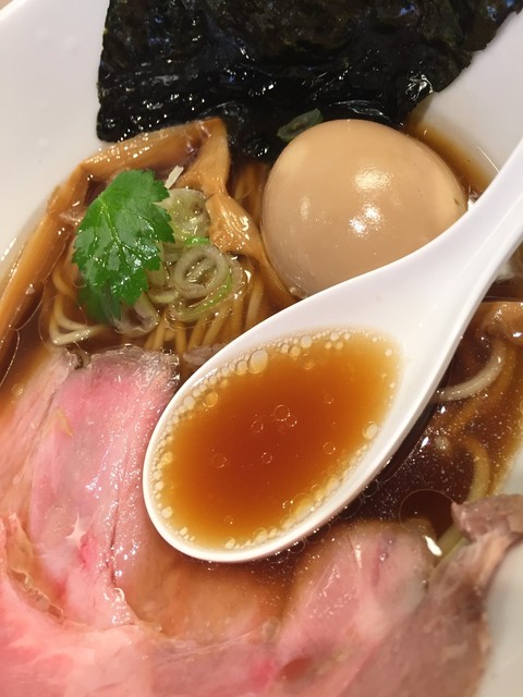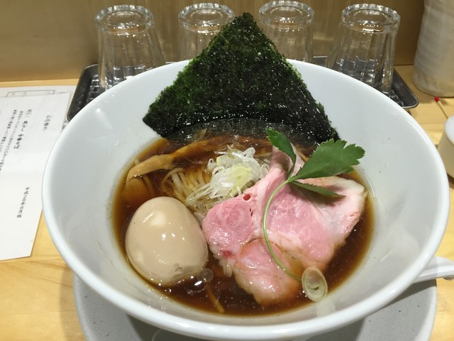 やたらに赤い卵しっとりチャーシュー、メンマ玉ねぎ、のり、にふんだんに魚粉^_^;