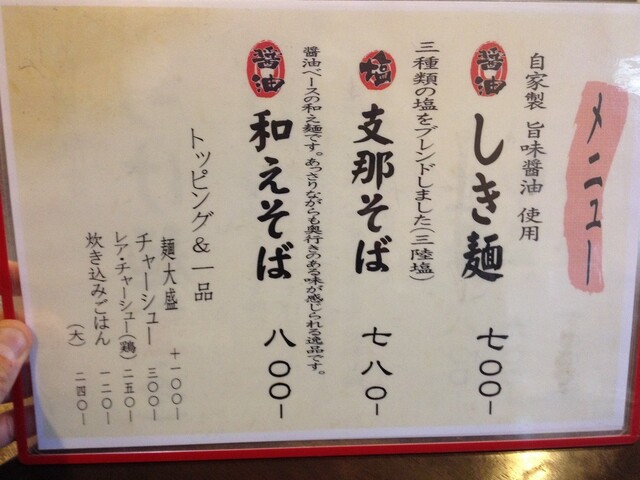 前回、支那そばを味わって、やっぱり「しき麺」も食べたくて詰めて訪問!!