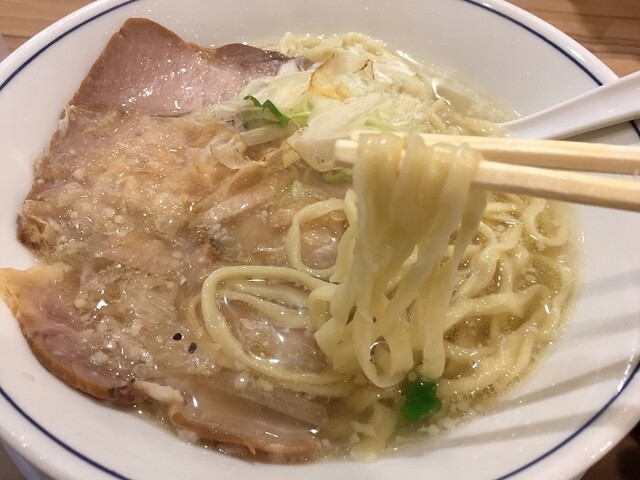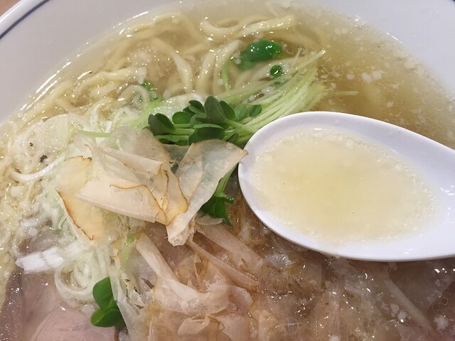 魚介塩のやや濁った清湯とも言うのでしょうか?上品なスープで鰹節がトッピングされています!