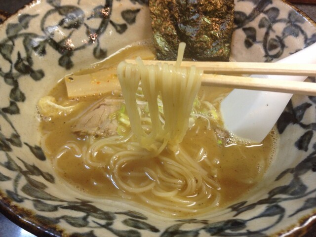 麺は中加水の細ちじれぎみの麺でスープと絡むといった印象で、僕は加水率低めが好きなんですが、