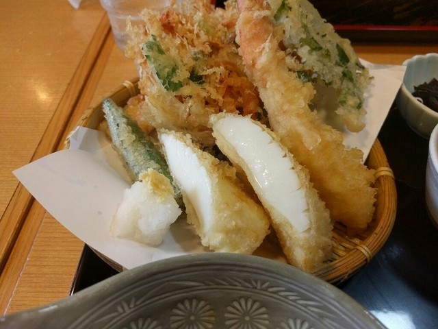 いかの天ぷら、海老の天ぷら、桜えびのかき揚げなど、