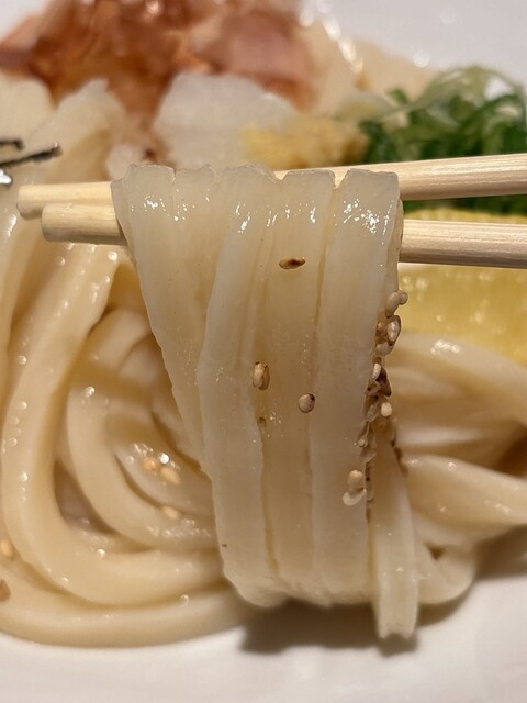 コシの強いうどんは、数本口に入れると