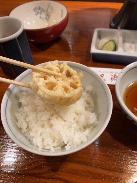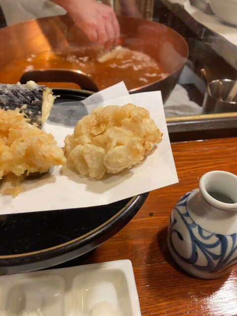 まずは海老とイカがいっぱいのかき揚げ。一口食べて美味しい!大正解!と思いました!