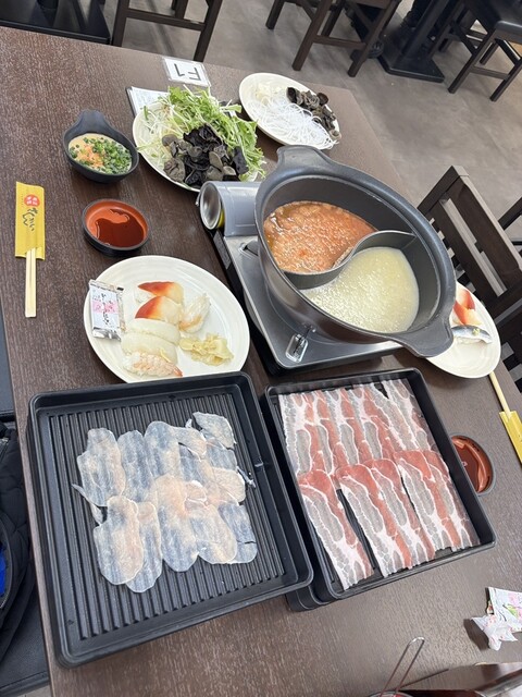 握り寿司、しゃぶしゃぶ(豚・鶏)、ソフトドリンク、チョコレートファウンテン、デザート、ソフトクリームや野菜類、麺類と盛りだくさんの内容。