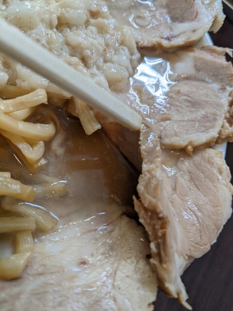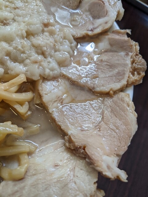 ・チャーシューは煮豚で、ラーメンにもっとも合うタイプです。とても柔らかく、味付けも最低限でスープの邪魔をしていません。