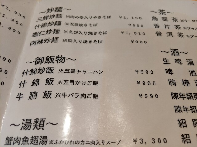 ・ご飯が硬く、ぱらぱら感はないものの、それを補って余りある旨み、食感、美味しさがあります。こんなに美味しいチャーハンは、大学生のころ横浜中華街で食べて以来です(そのときのお店は今はもうありません)。