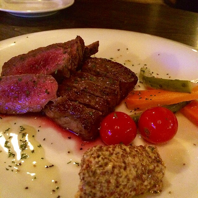 料理はサツマイモのフリットやキノコのソテー、牛さがりステーキなどワインだけでなくビールに合いそうなガッツリした物が多い印象でした。