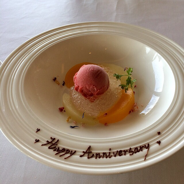彼女との記念日祝いだったので、彼女のぶんのデザートはプラス800円でグレードアップを。