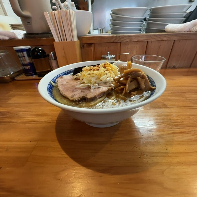 タレは名前の通りニンニク油ですが、ニンニク感は控えめに作られており、思ったより優しめな味わい(卓上にもニンニクはあるので調整可能)。塩味はあるので、底からよく混ぜて食べると激うまです!