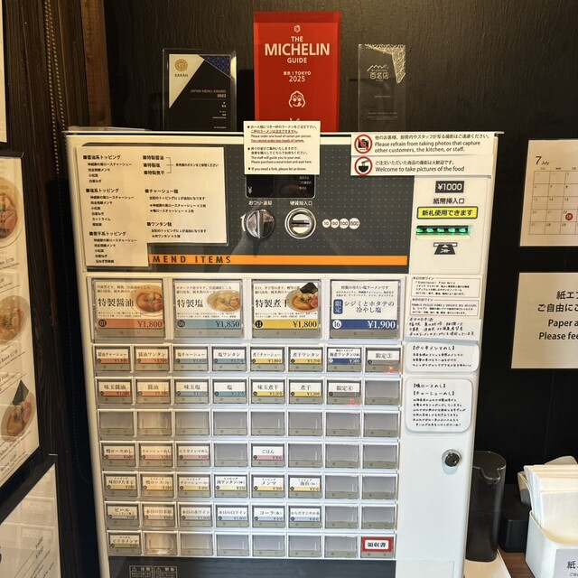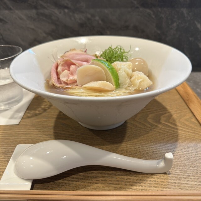 今回は限定の「夏アジ煮干の冷やし塩」と限定トッピングの「海老ワンタン(2個)」をチョイス。
