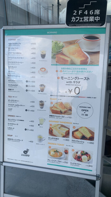 喫茶は2階のセルフでポケベルで商品を受け取る方式でした。厨房にスタッフが4人いてセルフだけど思ったよりだいぶ時間がかかりました。