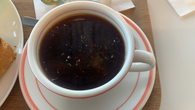 コーヒーはペーパードリップですが、お湯が蛇口から出る方式みたいで初めて見たペーパードリップです。