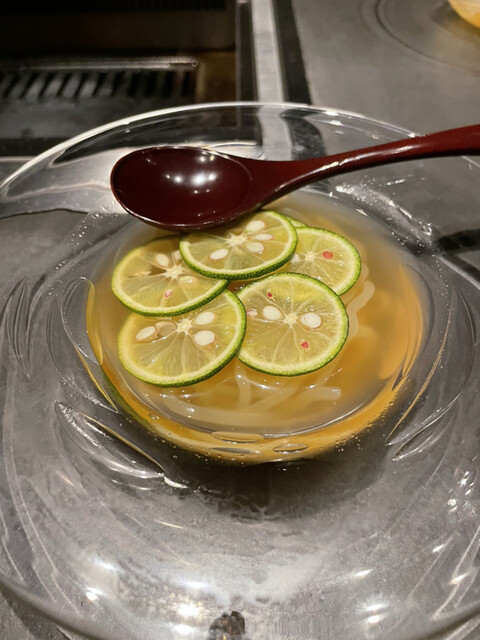 鮑じゅんさい雲母、大好きなじゅんさいに鮑雲丹が!!なんて贅沢な組み合わせ!