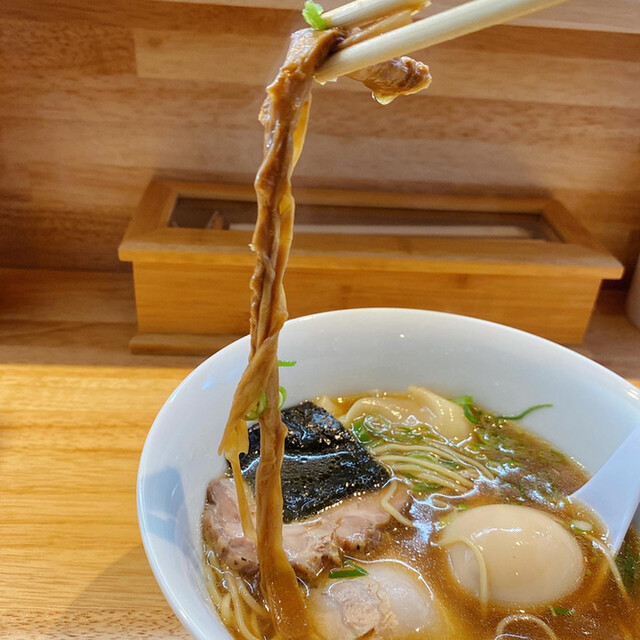 支那そばやらしく、地鶏の旨味・鶏油のコクが抜け、スープに使用されるその他様々な食材が深い旨味を立体的に形成しています。