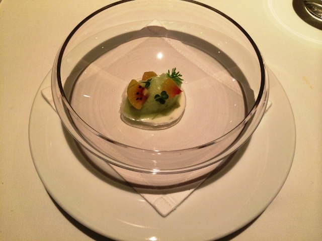 表参道のブランドストリートみゆき通り沿いのプラダとカルティエの間の通りを入った地下にあるフレンチ店内は、白が基調の開放的でエレガントな雰囲気のダイニング。ランベリービスと併設されていて、入口は一緒です。シャンパンで乾杯ワインはおまかせでお願いしました。ディナーコース●京都美山"初卵"、スッポンのスープとゴボウのキャラメリゼ面白い。卵の殻の容器に入った濃厚な卵とスッポンのスープゴボウのキャラメリゼがアクセントで美味しい●スペシャリテ 農園野菜のテリーヌ "お花畑の装い"お花畑のような見た目に感動!たくさんの種類のお野菜の味が複雑に合わさったテリーヌです●自家製パン●塩スモーク有塩バターと無塩バターの2種類●セイコガニとアーモンドのフラン、長野県産の青りんごを添えてカニとアーモンドが意外にもマッチします青りんごの酸味も引き立つ新感覚のお料理●寒ブリのミキュイ マスタードのオレンジのラケ、大根のラメル寒ブリは火入れが絶妙ソースともマッチしています●釣り小甘鯛のエカイエ 200gの世界 ソース・アールブランお魚メニューが続きますメニュー構成も気に入りました●鴨(こちらは当日にオプションで追加/プラス料金¥2000位)鴨は普通でしたが、ソースが美味しく盛り付けはキレイです●魂のひとすくい~ 中村フルーツ農園のグラニースミスのソルベ●ティラミスグラスカフェ・温かいアーモンドのソース、アマレットの香り●お口直し●ハーブティ●小菓子抹茶アイス・シークワーサームース・クグロフ・フィナンシェ・わらび餅和洋折衷です●お土産オリジナルのケースに小菓子お料理は和の食材を上手に生かした新感覚のクリエイティブなフレンチ。繊細な味で美味しかったです。サービスは適度な距離感を保ちつつ、プロフェッショナルな対応。トイレは2箇所あって、入口に近い方のトイレは外と変わらない感じで、薄着だったこともありかなり寒かったです。記念日にも利用したいお店です。レビュー時総合点数☆4.15
