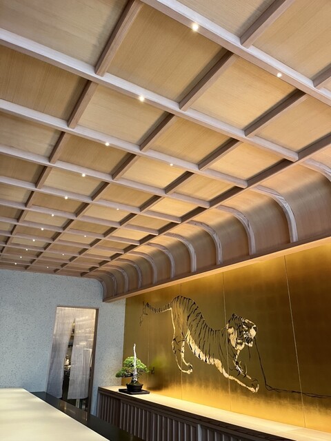 驚いたのは写真ではカウンターは白木のように錯覚しますが、実は和紙を重ね貼りしてますが、どうやって固めているかと言うと漆で接着しているそうです。
